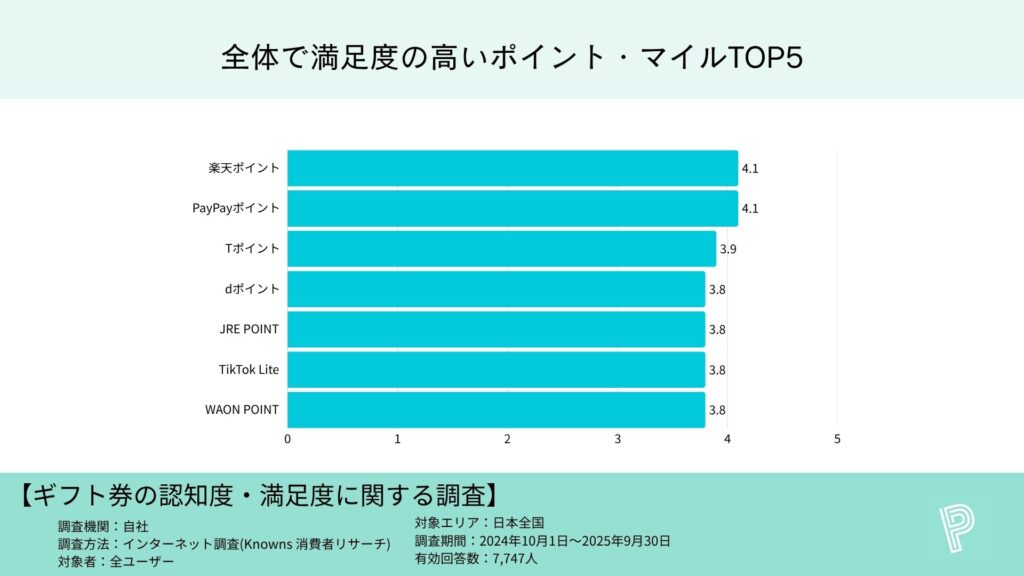 ・総合満足度1位は「楽天ポイント」「PayPayポイント」